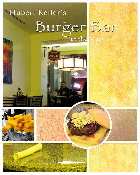 I am a fan.  I rooted for him.  Although he lost to Rick Bayless the title of Top Chef Masters, I remain a fan.  So when the opportunity to check out Hubert Keller’s Burger Bar at Macy’s in Union Square came up, I just had to go.  It wasn’t hard to convince the rest of the pack since who can really say no to burgers?  The menu had a whole array of burgers, one that piqued my fancy was a Burger to his name – supposedly his favorite, which had, Buffalo meat, caramelized onions, baby spinach, blue cheese on a ciabatta bun.  But no, I ended up making my own burger from a whole list of ingredients that he made available on his Build Your Own Burger menu.  I eventually chose a simpler version of his favorite.  I had Angus beef with blue cheese on a ciabatta bun – a combination of favorites.  Happy.