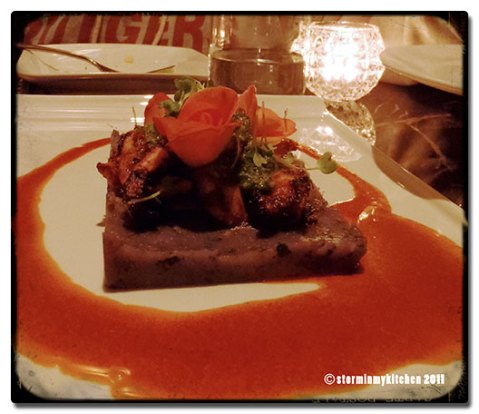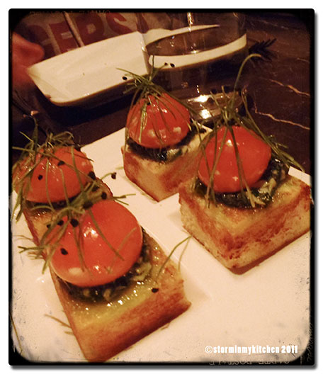 Welcome to the surreal world of Molecular Gastronomy, a culinary movement that uses modern science to transform the preparation of food.  This includes the study of how different cooking temperature affect egg’s viscosity and how a culinary process shapes a liquid into spheres which visually and texturally resembles caviar.  This is new territory in my gastronomic realm.  Watching Marcel Vigneron and Richard Blais on Top Chef has introduced me to this new food trend.  Though my curiosity piqued, I never gave much thought to it, much less sampling it any time soon.
