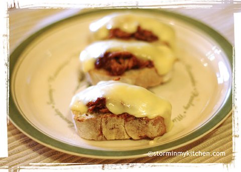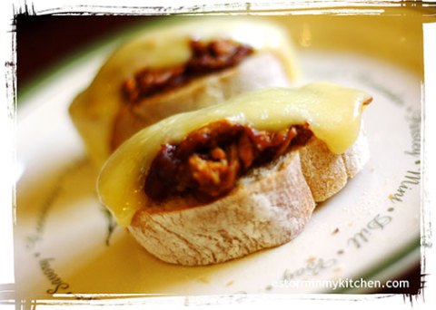 This is great as hors d’oeuvres too. Ahhh… I shall share this at tomorrow’s “leftover” party. Jack Daniel’s Pulled Chicken consumed. Fontina consumed. More to go…