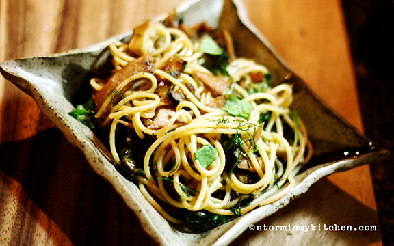 Everyone knows that the saltiness of the caper and the citrusy burst of fresh dill is perfect complement to tuna.  We added a new dimension as the mushroom lends an earthy flavor, the arugula some tangy zest while the chili boosts all these up.  Go ahead, give it a try and let this simple dish give a bit of happiness today.