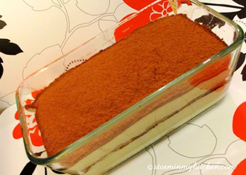 Anyhow, I made tiramisu, my 2nd attempt actually. The first one failed because I used our local broas – you know the one I used to make this. It went all watery on me. The broas was too light, it soaked up a lot of the espresso;