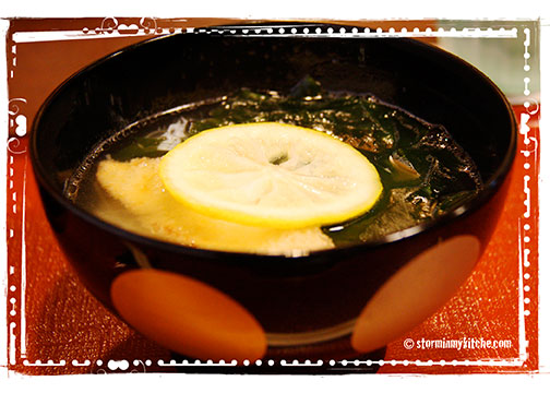 Fried Sea Bream in Hot Noodle Soup. The light broth with a hint of lemon makes this rice noodle soup light and refreshing. The fish, similar to a sea bass, adds to the flavor. A delightful change to the usual miso soup.