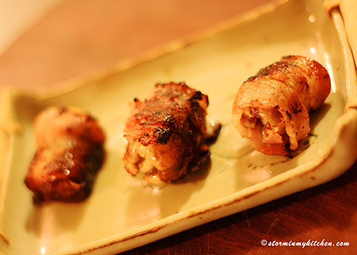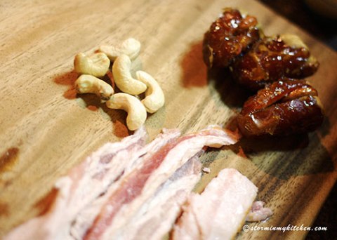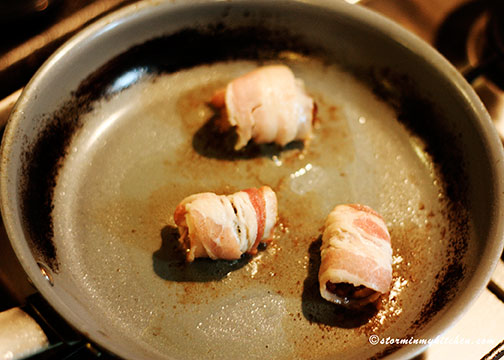 This dish can be prepared ahead of time and cooked when guests arrive. The dates that are soaked in honey while easily caramelizes the bacon (so be careful not to burn), gives that added sweet contrast that makes this dish a winner in my books. Sweet, salty with a hint of smoky aroma… Yum!